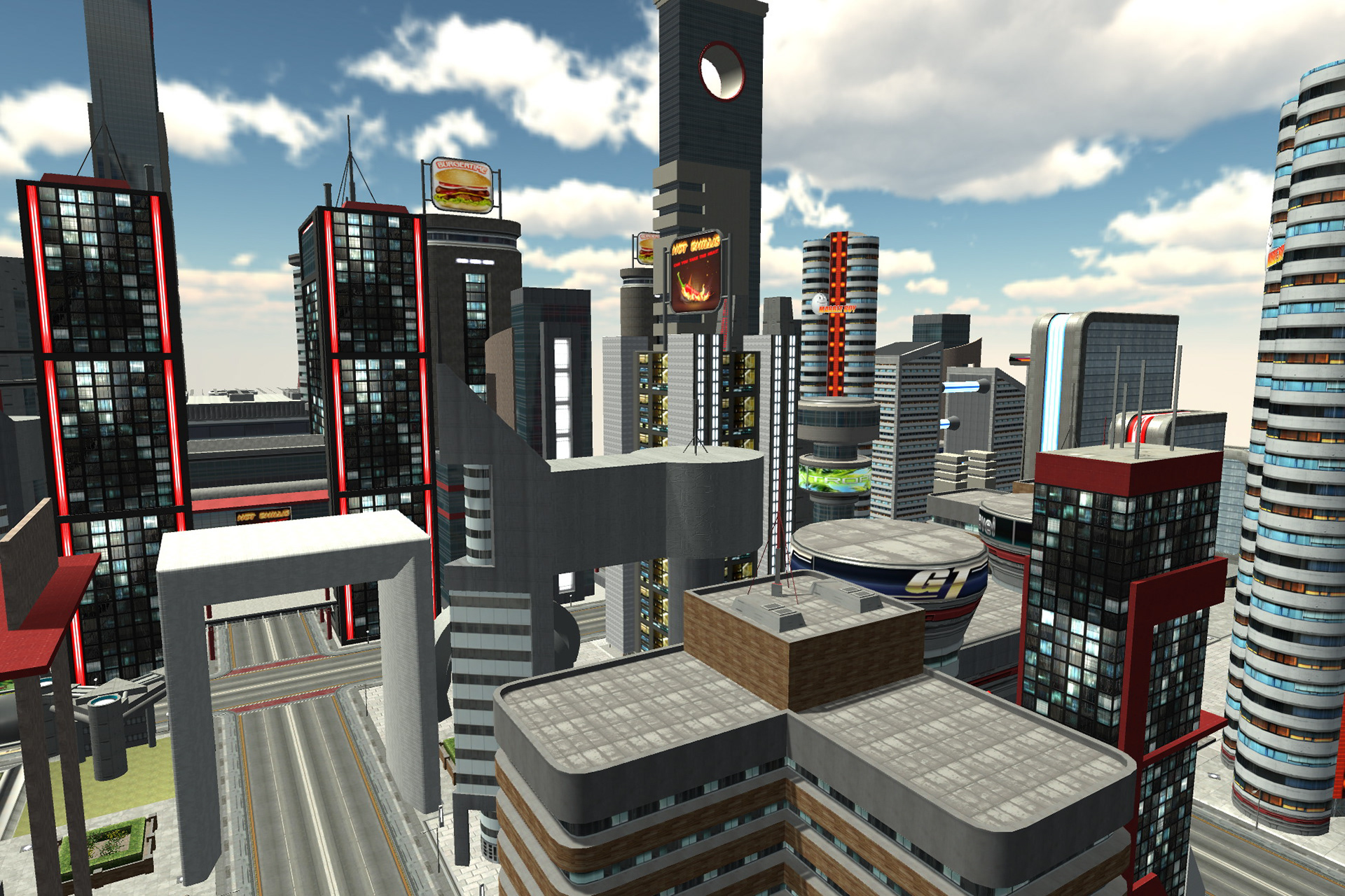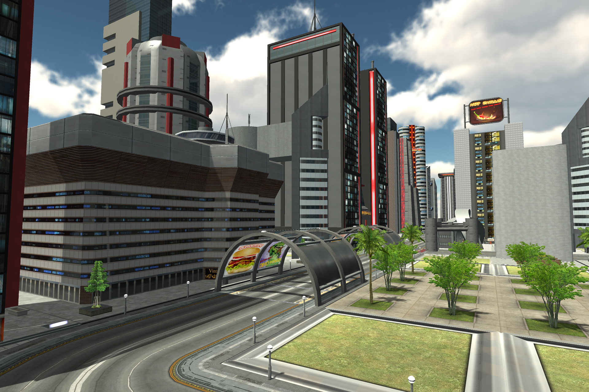 This is a modular sci-fi city building pack featuring 56 unique prefabs, with an average polygon count of 1000 tris. Building types include skyscrapers, apartment buildings, office blocks, shops, cafes & restaurants and mixed-use buildings. There is also a full road network kit, with straights, bends, junctions, bridges and more.