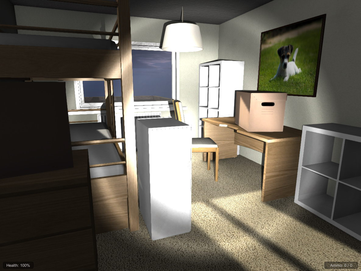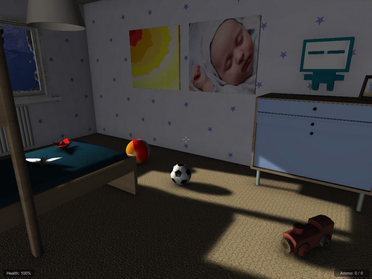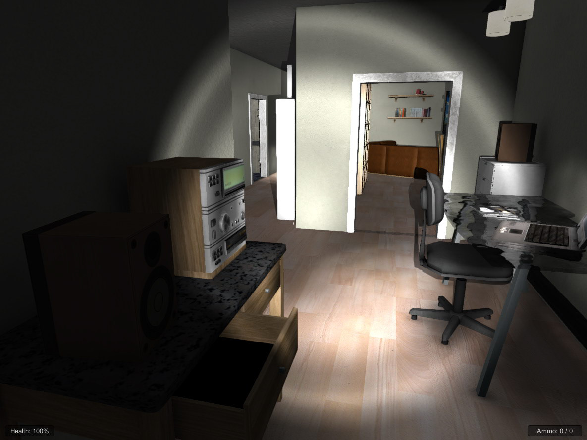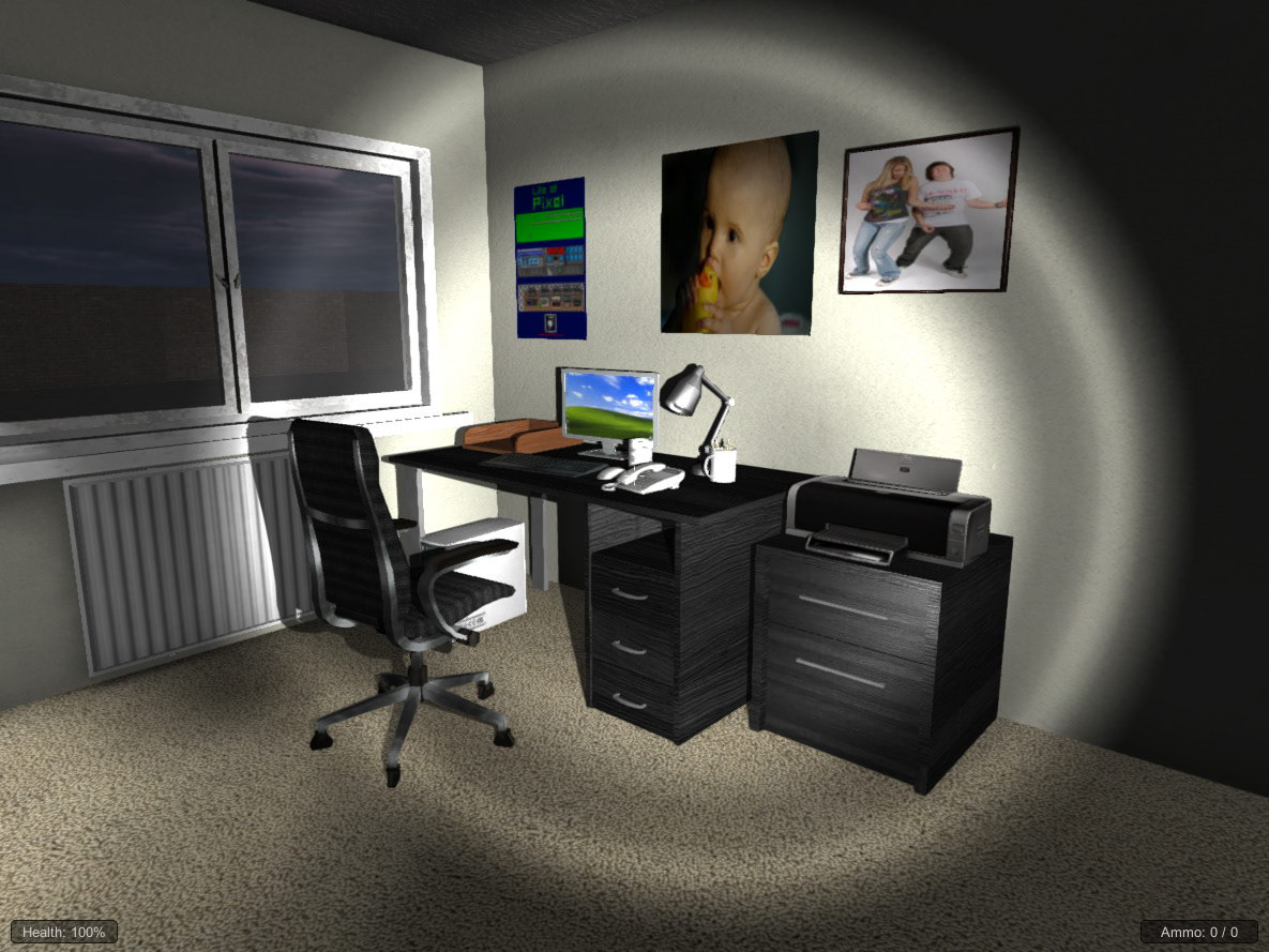 Development environment artwork from the game concept, Hell House. My role - 3D level art and characters, level design, texturing and coding.